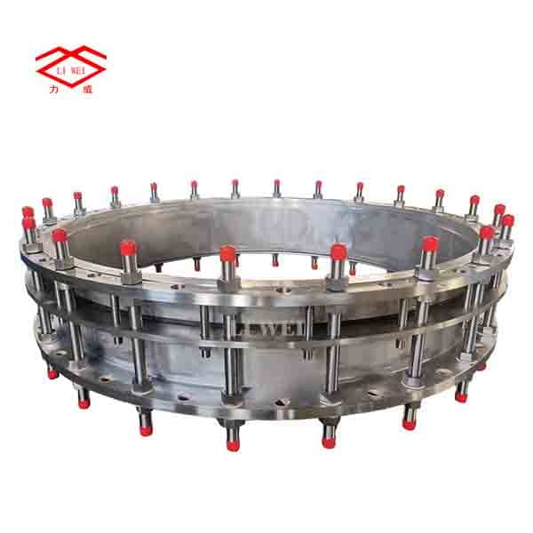 該產(chǎn)品采用金屬鑄造或焊接組成,松套部位選用梯形圓環(huán)橡膠密封圈,在壓蓋和螺栓的作用下,利用橡膠的壓縮彈性變形原理。迫使密封圈變形于接頭本體伸縮管外壁之間進(jìn)行靜密封。金屬和密封圈嚴(yán)格按使用性能及用戶要求選用。材質(zhì)外部涂裝高強(qiáng)度防腐漆料,各部連接螺栓為高強(qiáng)度碳鋼或不銹鋼制作。因?yàn)楸倔w與伸縮管之間有一定間隙,使它具有一定的軸向和徑向位移。在管道中能有效的補(bǔ)償和緩解管道盲板推力,又能便于水泵、閥門的安裝維修和更換,實(shí)為管道安裝及運(yùn)行中最為理想的配套產(chǎn)品。
